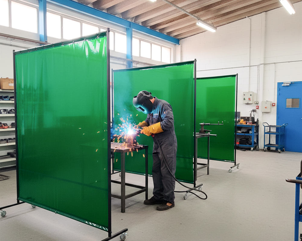 Os biombos para solda da Destac oferecem mobilidade e segurança para operações de soldagem. Com estrutura metálica resistente e cortinas de PVC especiais, são ideais para isolar áreas de trabalho, proteger outros trabalhadores contra radiação luminosa e respingos, além de manter a organização do ambiente industrial.